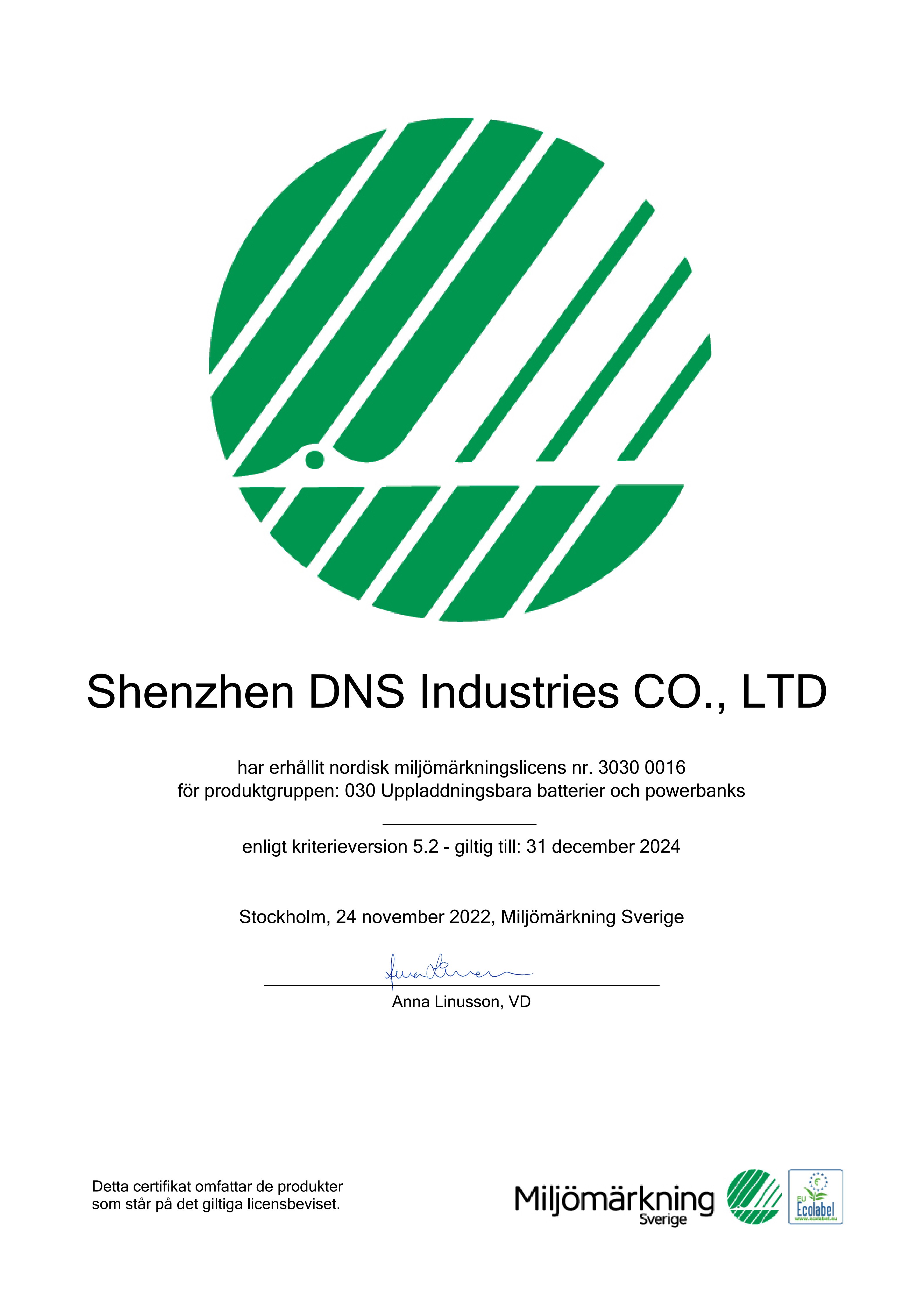 11月25日,星空线上官网集团官方网站获得北欧白天鹅生态标签(Nordic Swan Ecolabel)认证, 成为全球首个获得充电宝北欧白天鹅生态标签认证的公司。庆祝星空线上官网集团官方网站加入白天鹅家族,共同为绿色转型而努力。